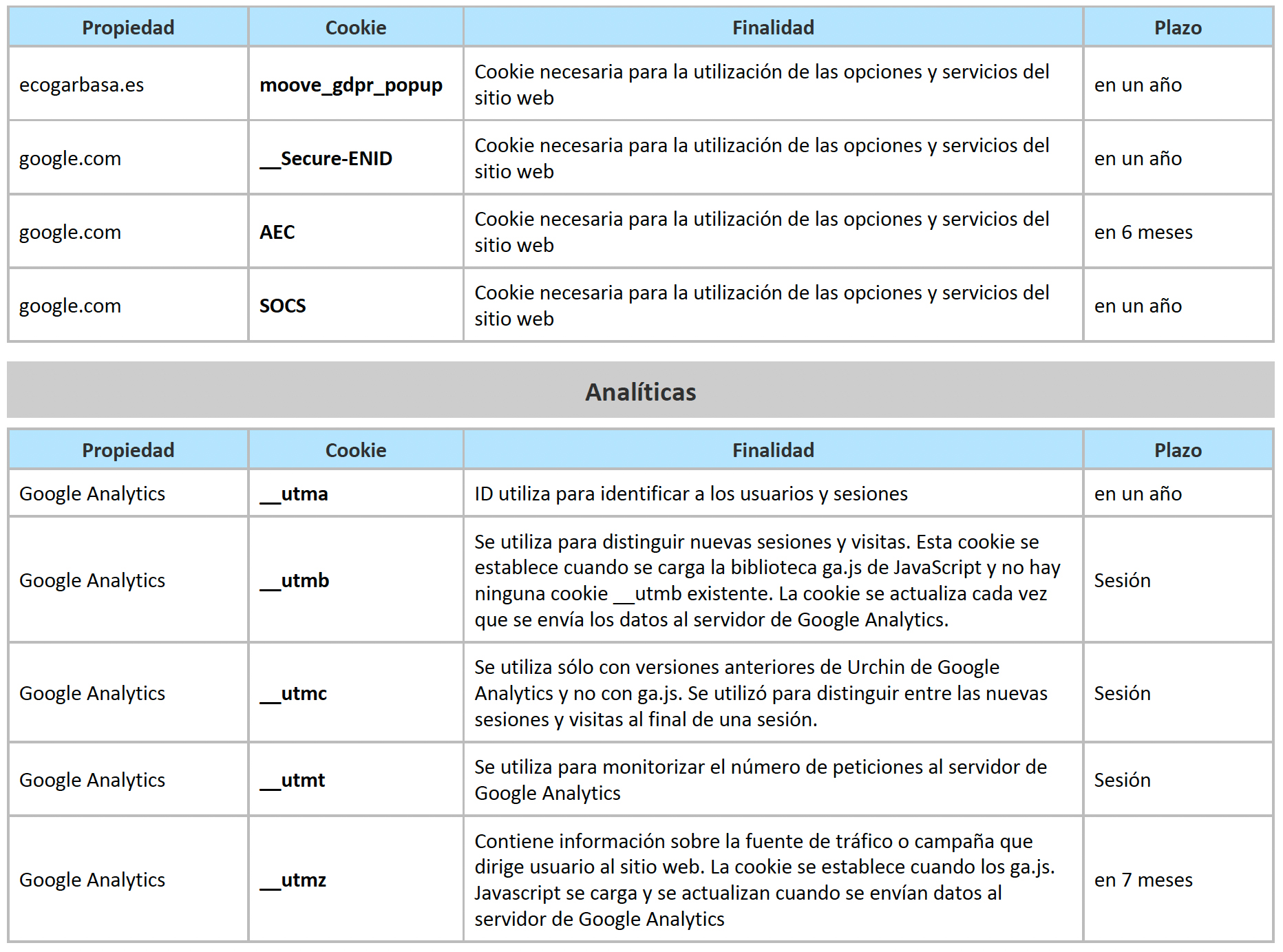 • Datos de contacto para ejercer sus derechos: info@ecogarbasa.es
