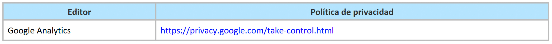 COOKIES DE TERCEROS NO CONTROLADAS POR EL EDITOR